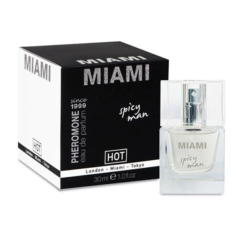 Parfemi sa feromonima su izvrstan izbor kako za dame, tako i za momke. Feromoni su supstanca koju naša tela prirodno luče, a koja je odgovorna za onaj neodoljivi osećaj privlačenja među jedinkama suprotnog pola. Parfemi sa feromonima pojačavaju ovaj prirodni telesni odgovor i uzbuđenje pretvaraju u pravu ekstazu. Miami Spicy Man sasvim sigurno će ispuniti vaša očekivanja i oboriti svakog s nogu.